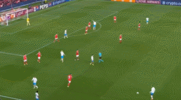 这一次的攻击 ,最初来自于琼阿梅尼的远射,在被封堵之后,皮球转移到侧翼,随后传中球打危险区域 后点。