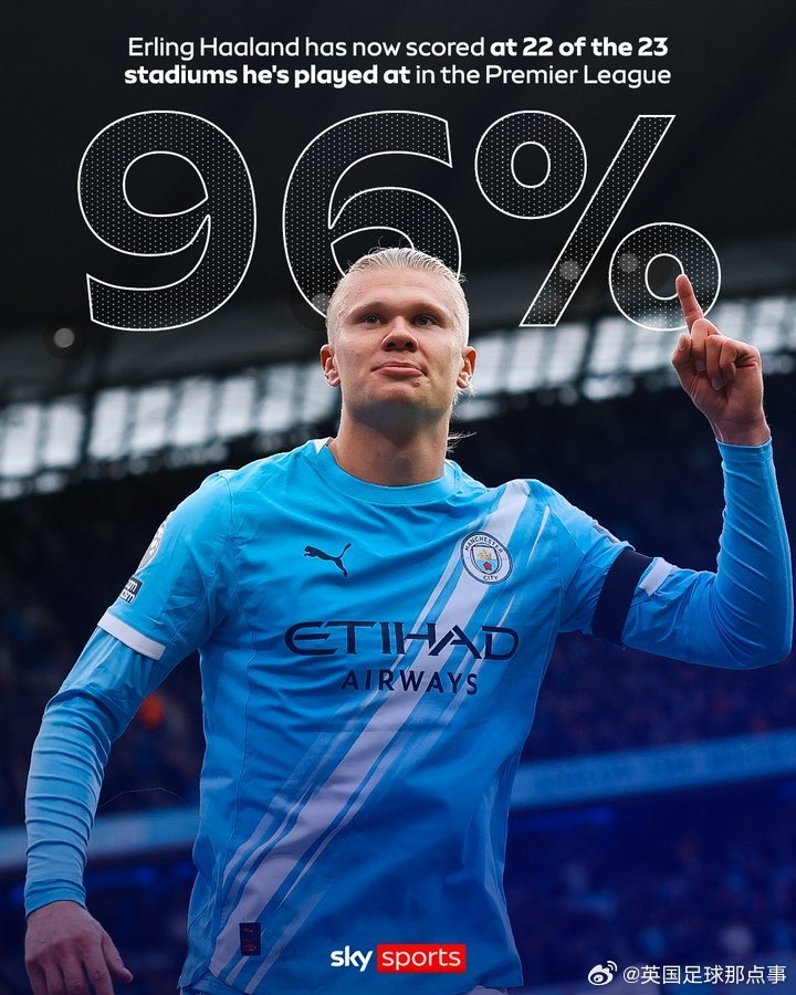 💥哈兰德已经在英超出战的23座运动活动 场 中攻破了22座的古代足球 门 !