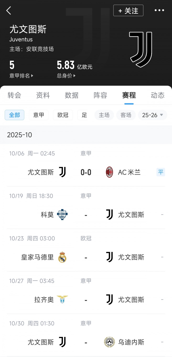 国际赛事 日后,尤文在10月中下旬将迎来一波比较艰难的3连客:科莫、皇马、拉齐奥。此外,10月底的乌迪内斯同样也不是善茬。