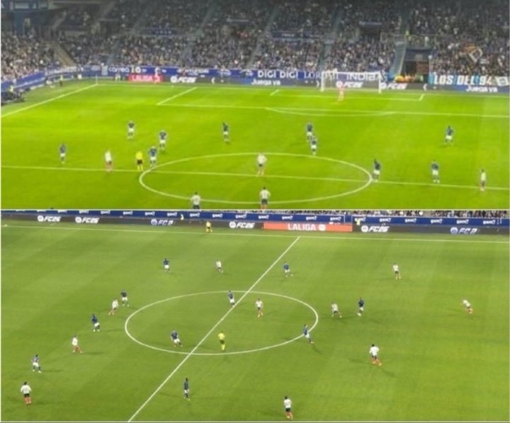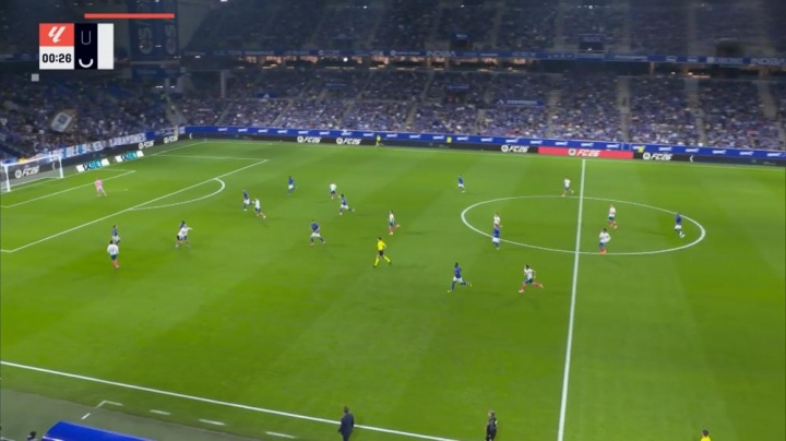 西甲未播出本场赛事 的前25秒,主裁吹响开场哨后,镜头马上切到运动活动 场 的俯瞰视角,放了将近20秒才回到运动活动 场 内,但给的是双方主帅特写。待到赛事 画面复健 ,比分牌上的计时装置 显示已是0分26秒。