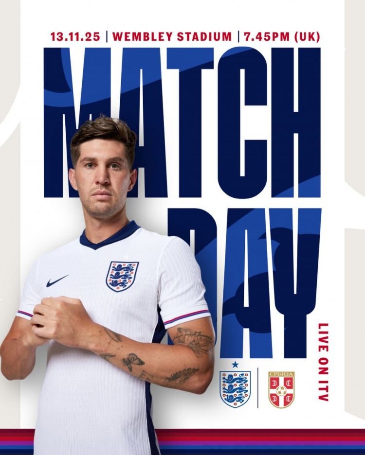 英格兰队官方社媒晒出为此役制作的海报,欧洲杯直播吧斯通斯单人出镜。