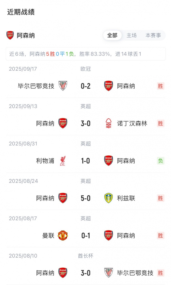 阿森纳杆位:1-拉亚、12-廷伯、2-萨利巴、6-加布里埃尔、33-卡拉菲奥里、36-苏维门迪、41-赖斯、23-梅里诺、20-马杜埃凯、19-特罗萨德、14-约克雷斯