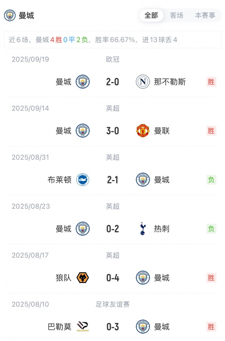 曼城杆位:25-多纳鲁马、45-胡桑诺夫、3-鲁本-迪亚斯、24-格瓦迪奥尔、33-奥赖利、16-罗德里、20-B席、4-赖因德斯、47-福登、11-多库、9-哈兰德