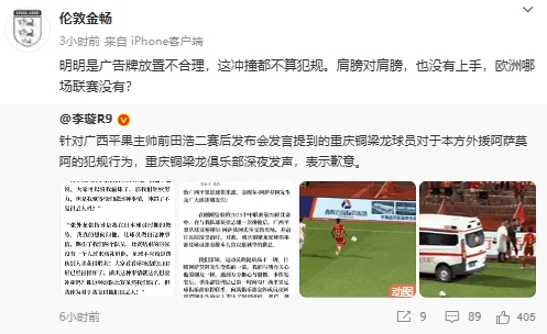 今天早些时候。经纪人金畅在社媒发表了对这一事件的看法,足球直播无插件免费在线观看他表示:明明是广告牌放置不合理,这冲撞都不算违例 。肩膀对肩膀,也没有上手,欧洲哪场职业联赛 没有?