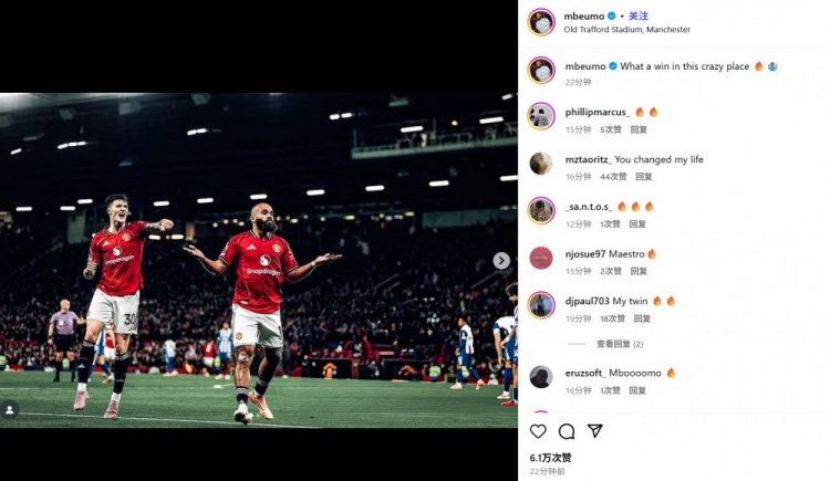10月26日讯 曼联在本轮英超焦点战4-2力克布莱顿,姆伯莫连进两球。