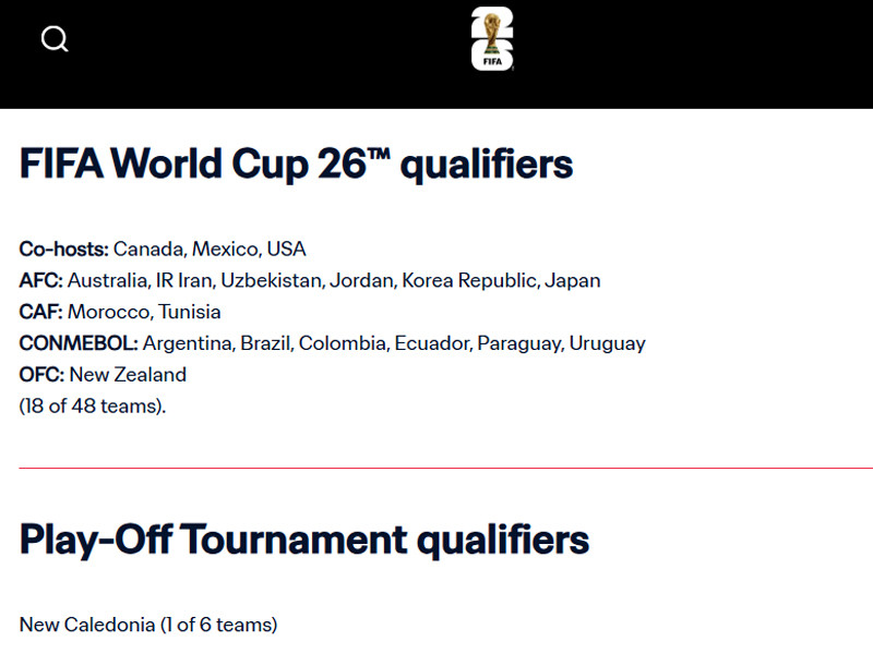 根据国际足联官网的数据显示,一共有18支球队晋级下一轮 ,包括东道主3队,亚洲和南美洲各有6队,非洲2队,大洋洲1队。另外,来自大洋洲的新喀里多尼亚,成为第一支参加洲际附加赛的球队,附加赛一共有6队。