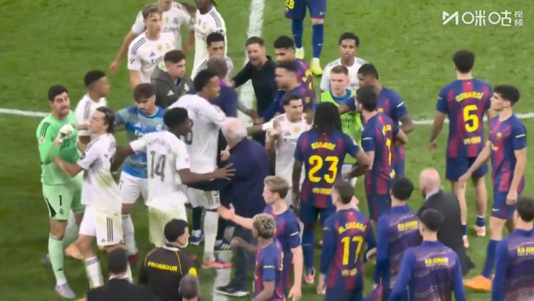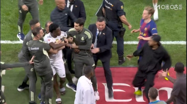 然而,终场哨响并未平息球员们的怒火,“火花再次迸发”。此前就因与皇马主帅阿隆索发生过争吵而“憋着火”的维尼修斯显得尤为激动。