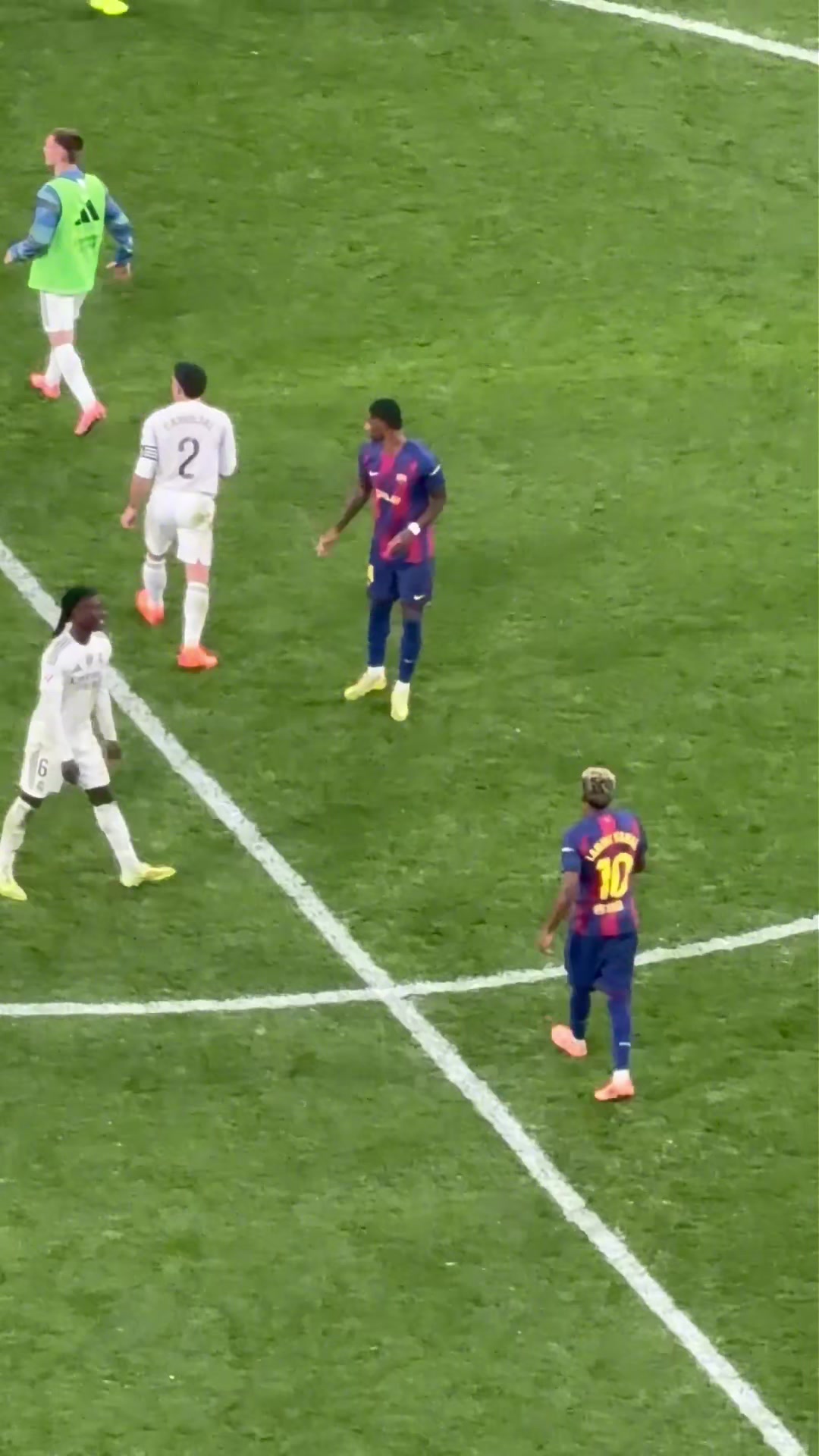 亚马尔隔空朝着几名对手连喊“有种出去碰碰”,直到维尼修斯在返回更衣室途中(远远地)与他交错——维尼修斯对着他比划“话太多”的手势,亚马尔直接约架更衣室。