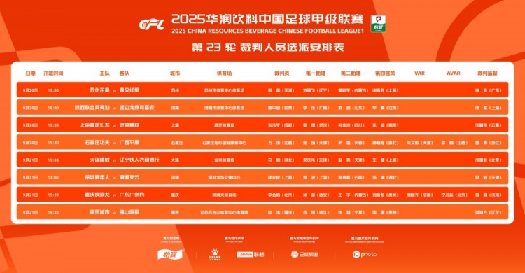 9月20日讯 中甲职业联赛 官方公布职业联赛 第23轮裁判 选派,英超直播免费观看在线唐顺齐将担任重庆铜梁龙VS广东广州豹的VAR裁判 。