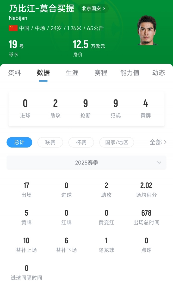 09月20日讯 北京国安公布球员伤情公告,球队中场球员球员乃比江大腿肌群 负伤 ,复健 时间不低于4周。