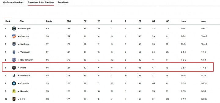 目前美职联东西区的总排名上,费城联63分第一,辛辛那提58分第二,足球直播无插件免费在线观看圣地亚哥、温哥华白浪分列三四,纽约城和迈阿密国际56分排在五六位。