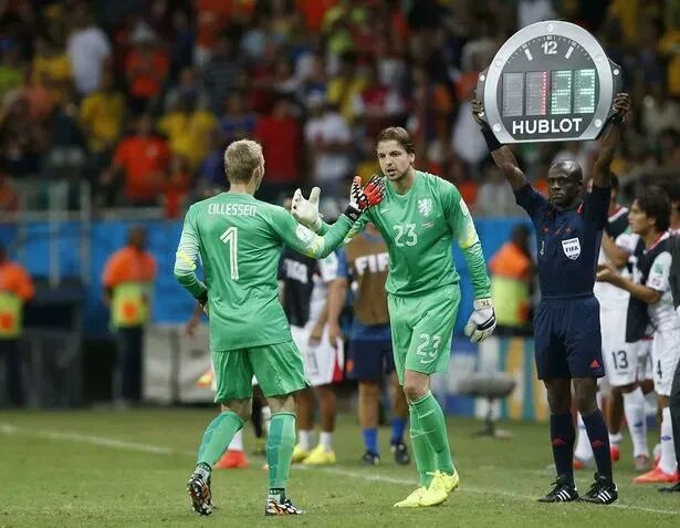 经验丰富的荷兰主帅路易斯·范加尔自然也深知这一点。于是,他在延长赛 赛即将结束前,用二号守门员克鲁尔换下了杆位守门员西莱森。在此之前,世界上历史上从未发生过这样的情形:二号守门员在罚球决胜 前被临时换上场,担任奇兵的角色。
