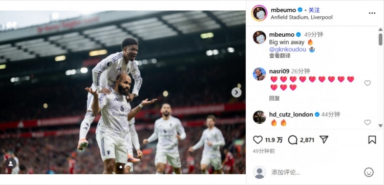 赛后,免费欧洲杯直播此役闪击破门的姆伯莫更新社媒庆祝获胜 网易体育官网,他写道:关键的客场应战 获胜 🔥