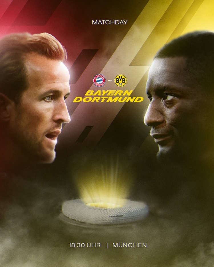 赛前欧冠新闻,多特官方晒出海报,足球直播无插件免费在线观看为本场赛事 预热。拜仁方面凯恩出镜,多特方面吉拉西出镜,海报中央为对阵双方队标 。