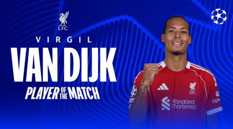 赛后范戴克也是当选全场最佳球员网易体育官网。